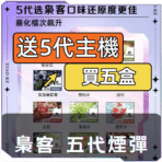 購買五盒梟客五代電子煙煙彈,即贈送梟客五代小煙主機一支。下單時請備註所需顏色,若未備註則隨機發送。
